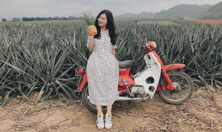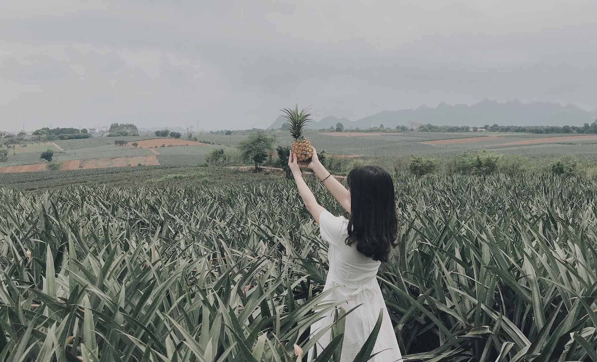 Lưu ý:Nếu bạn muốn có một bộ ảnh đẹp thì chắc chắn nên có ít nhất 1 quả dứa vàng ươm, lá dài dài để cầm chụp cùng cho so deep nhé