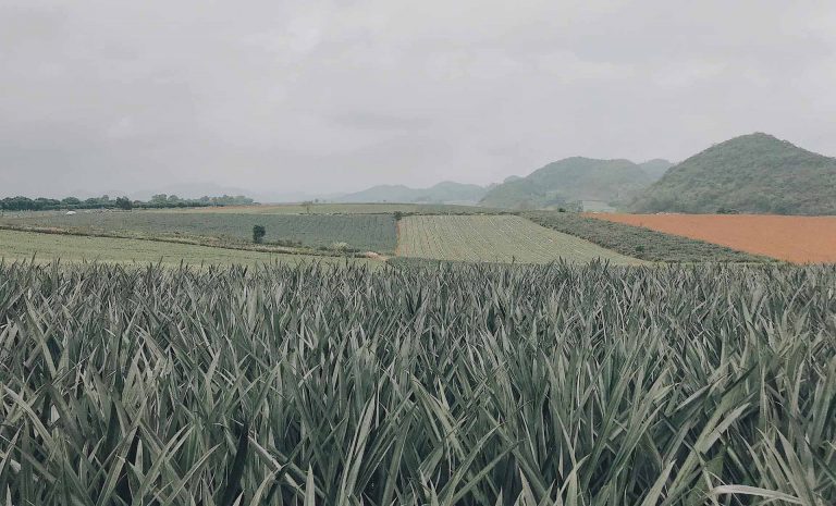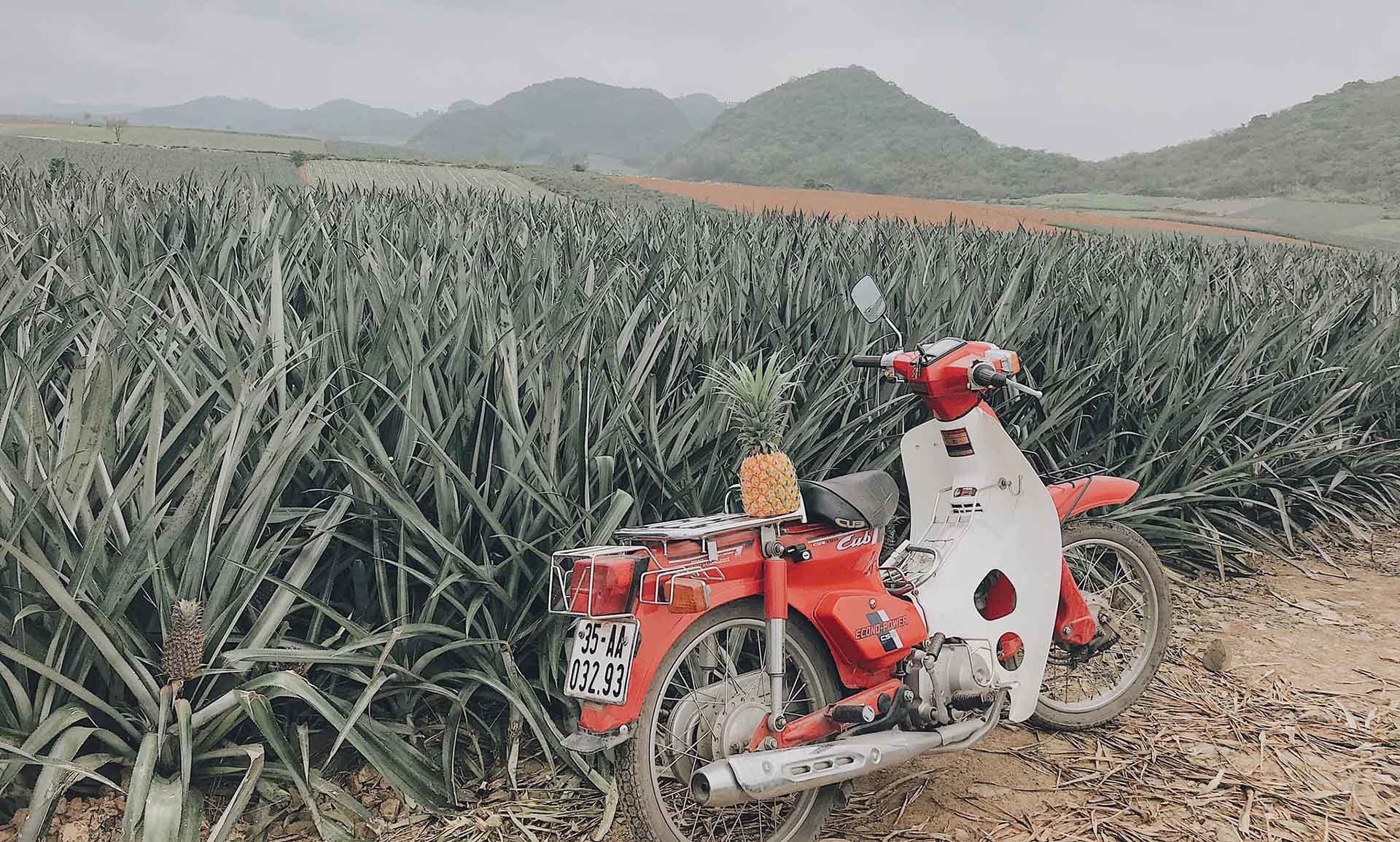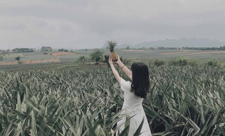 Vào gần đến nơi sẽ có 1 số quán bán dứa, bạn có thể mua ở đây để mang vào chụp ảnh nha. Vào đồi dứa tông màu chủ đạo là xanh và xanh nên bạn mặc những màu nổi bật chụp sẽ rất đẹp.