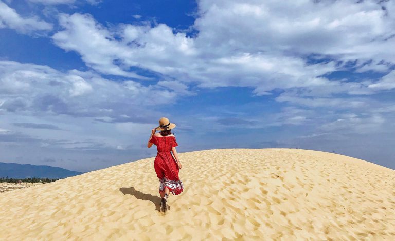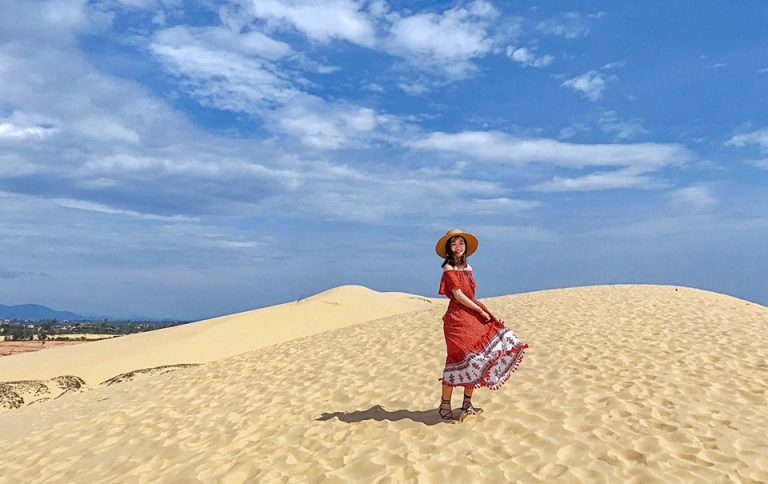 Đồi cát cách thành phố chỉ khoảng 10km (đi thẳng đường Trương Pháp là đến). Bạn nên đi từ sáng sớm 5h – 7h hoặc chiều tối 17h – 18h để đỡ nắng nhé.